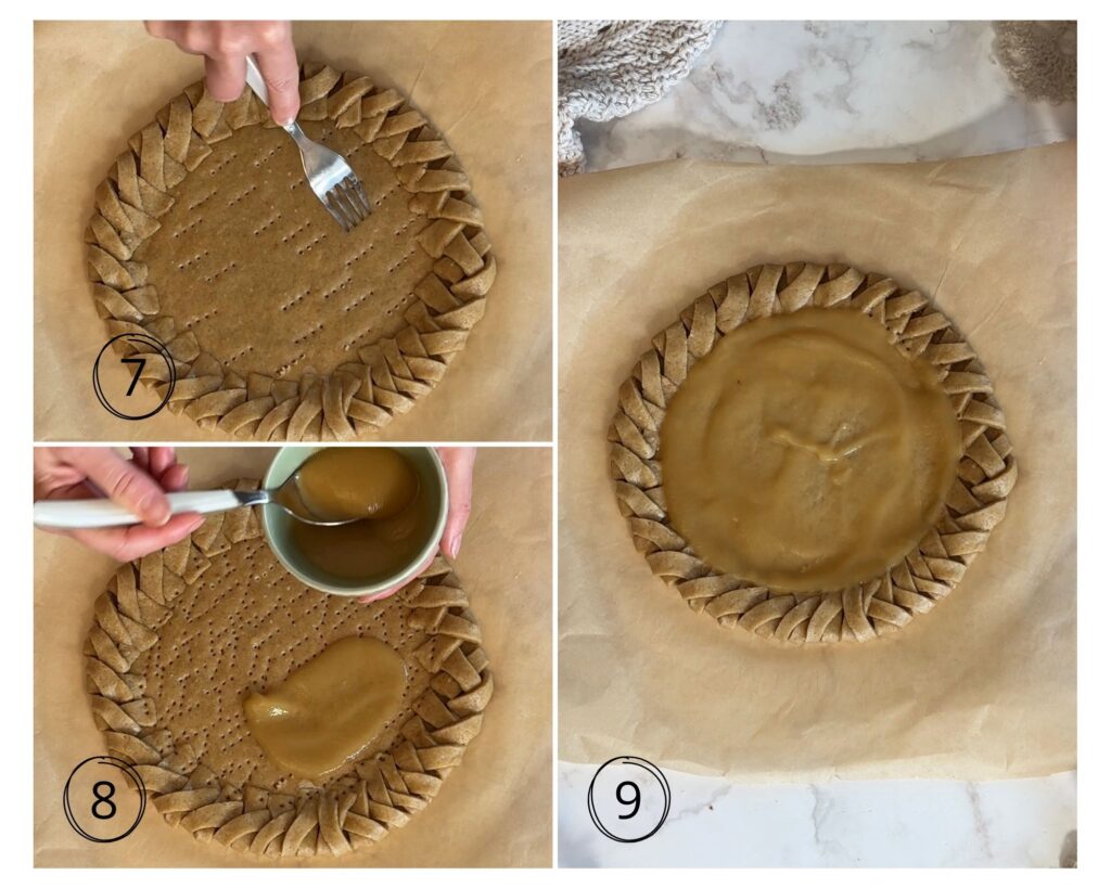 Per preparare la tua crostata di mele veg senza stampo inizia dalla frolla: trovi il procedimento completo qui: frolla veg facilissima senza margarina